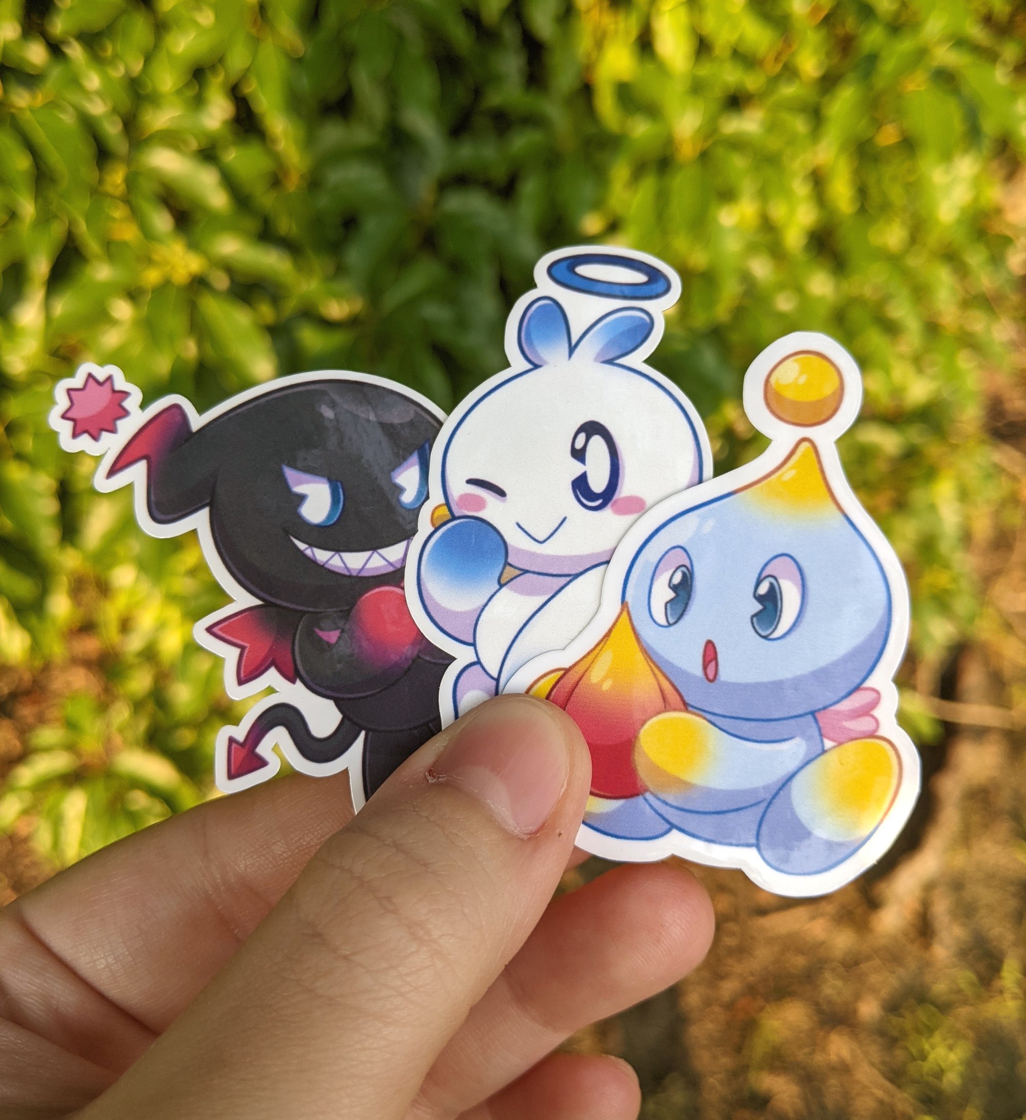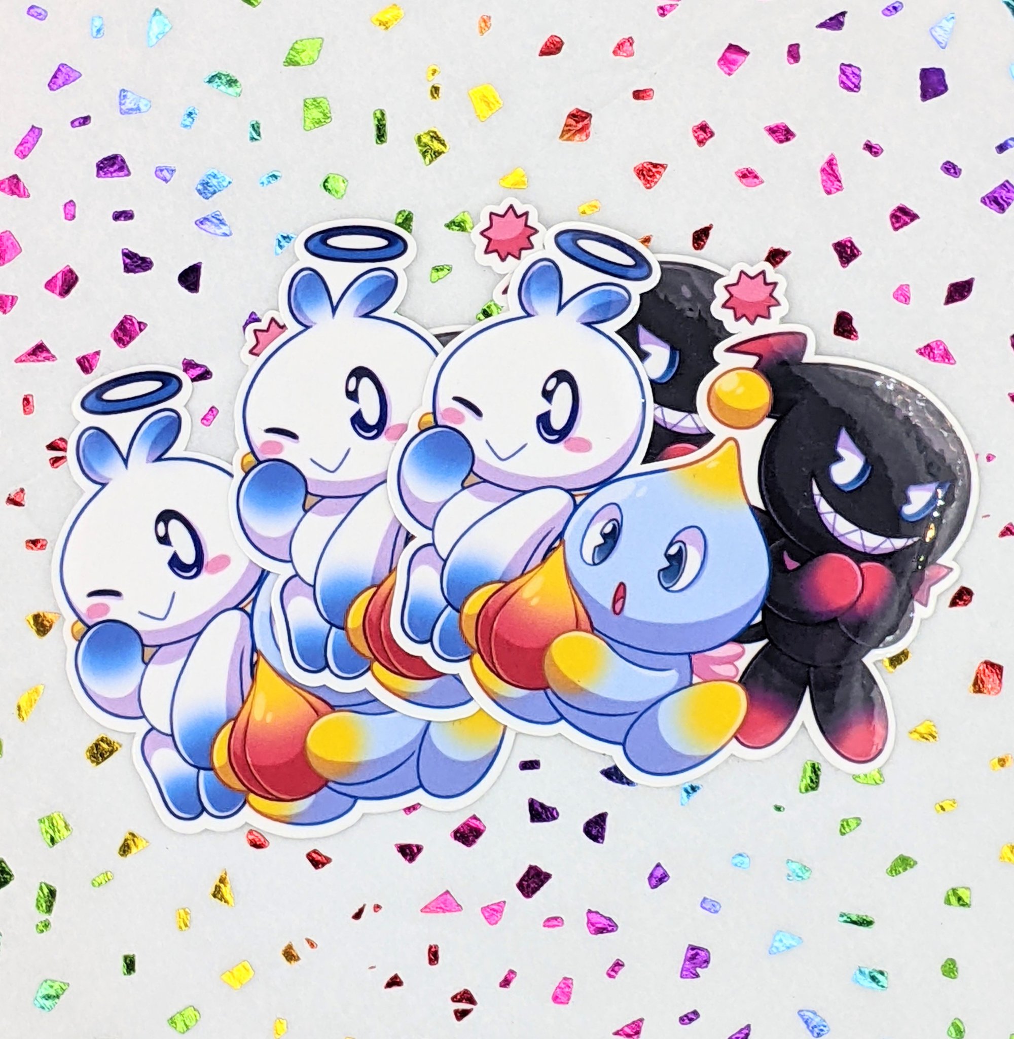 Choose from each classic Chao type with a smooth glossy finish or a shimmery holographic finish, each are available individually or as a group sticker!