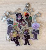 Custom-made 2.76'' keychains with clear acrylic and an additional metal charm correlating to each Manager! Perfect for hanging up in your collection or accessorizing your keys!